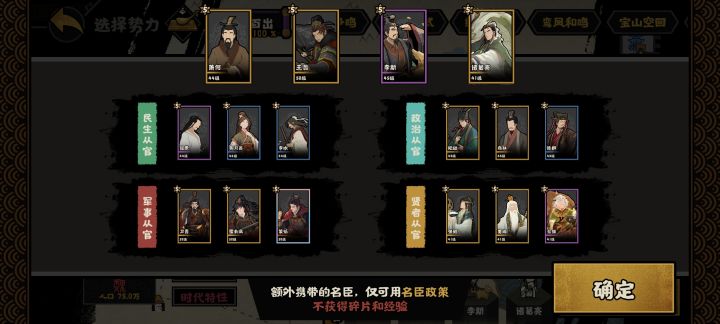 由于该演义词条有占领城池降低当前10%战力和10%规模的debuff,官方推荐用武将和带有卡牌的名臣,我们这里提供另一种思路:科技流。思路分析:通用政策中有一个政策是消耗2个士子(cd5min),科技点+1,搭配上科技流以及王翦李斯就能很大程度上抵消词条debuff,刚好把所有移动和驻停删除了,所以直接用弓兵现在长城上玩植物大战僵尸(不是),武钢车在前面吸引仇恨,破敌斩杀。我这把用的韩国,最后