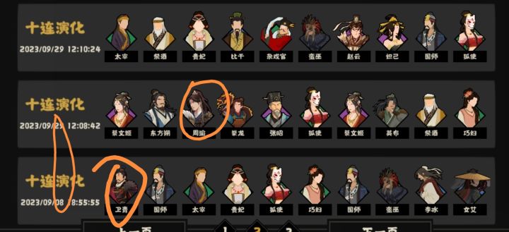 注意时间,没有换号,纯纯运气。下本来想垫荀彧的,没想到没想到。79抽出4金,什么叫作欧!周瑜十抽出,望舒二十抽,张骞三十三抽,霍去病十六抽