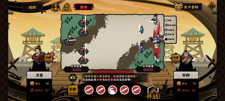 最近各它更新了论战新玩法,虽然奖励很对付,但是个人感觉论战有些关卡比较锻炼脑子,可以锻炼各位玩家的灵活应变能力。因此本人从所有的论战关卡中着重挑选出来一些相对困难的关卡给玩家进行分享通关的方法,而本人将给玩家们带来论战卡牌篇歼敌的通关方法和注意事项。 但看三星通关的要求,其实两点就可以概括:低于60%的损耗和战斗获得胜利。而做到这些要求,首先就是最基本的一件事:注意兵种的初始站位。 因此本人将