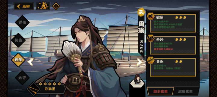 三国如期而至,这里也分享下我玩三国名臣所得的经验,也顺便整合了下之后会出的名臣情报~ 三国的武将机制 ,使得三国名臣在这个时期大放异彩...很多之前时代的名臣在这个剧本中的发挥有所欠缺。但同时,三国名臣在过去时代也并不算因为武将机制强压一头老名臣(在过往时代,武将同时间只能在一个出征队伍里),还是要拼技能跟机制,总的来说,我觉得策划这个强度均衡的不错。 聊回周瑜,乐感等级的强度很高,周瑜直