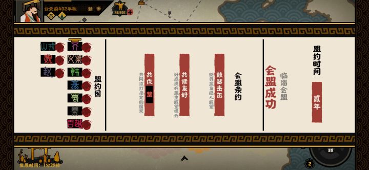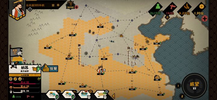 这个齐国是什么来头?开局就能召集诸国讨伐我楚国,再过几年甚至直接抢城,一举能成为一统天下的大国。我开局也就抢了两个白城就直接被10个国家打了20场战,5胜15输,我也懒得打了,直接重开换到义渠