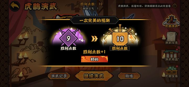 买了一次士气,花了10紫玉。好歹10胜了。