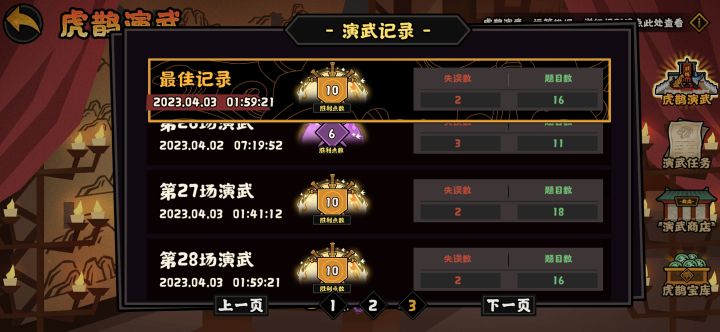 虎雀演武感觉上是调难度了,摆完三把赌了两个加三都对了,而且战损才66,甚至这两组也都没有什么冲车,井阑