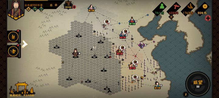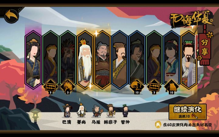 范蠡,地级,在春秋战国,春秋,三家分晋,吴楚越多个剧本中出现。 技能解析∶1.通商 每有一个结盟国增加16%钱粮产量。政策时间为20分钟,且无需特殊资源。看着钱粮提升好像不高,而且需要多个结盟国,但其实与其他名臣比起来很离谱,比如萧何 十万兵力提升30%的钱粮产粮,而范蠡只需要结盟两个国家。或者王昭君与西施 一个提升40%的粮产,一个提升50%的金产,而范蠡只需结盟三个国家进乎接近