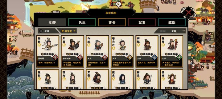 太难受了,后期战力被卡脖子前期玩汉统一南方没什么好说的。后期,南北大国对峙的时候,战力被新拉下去,军事升级要特殊的马类资源。怎么获取?后来才发现要马场,哪里有马场?全部都在北方啊!于是游戏后期开始了长达两天(现实生活)的争夺马场之路(没有连着玩两天,挑战模式挂机可以过政策时间)(后面自立城市全部恢复了,你看看我卡多久吧)主要抢河西四郡的那个马场。打又打不过,只能靠投石车碰碰运气,慢慢磨