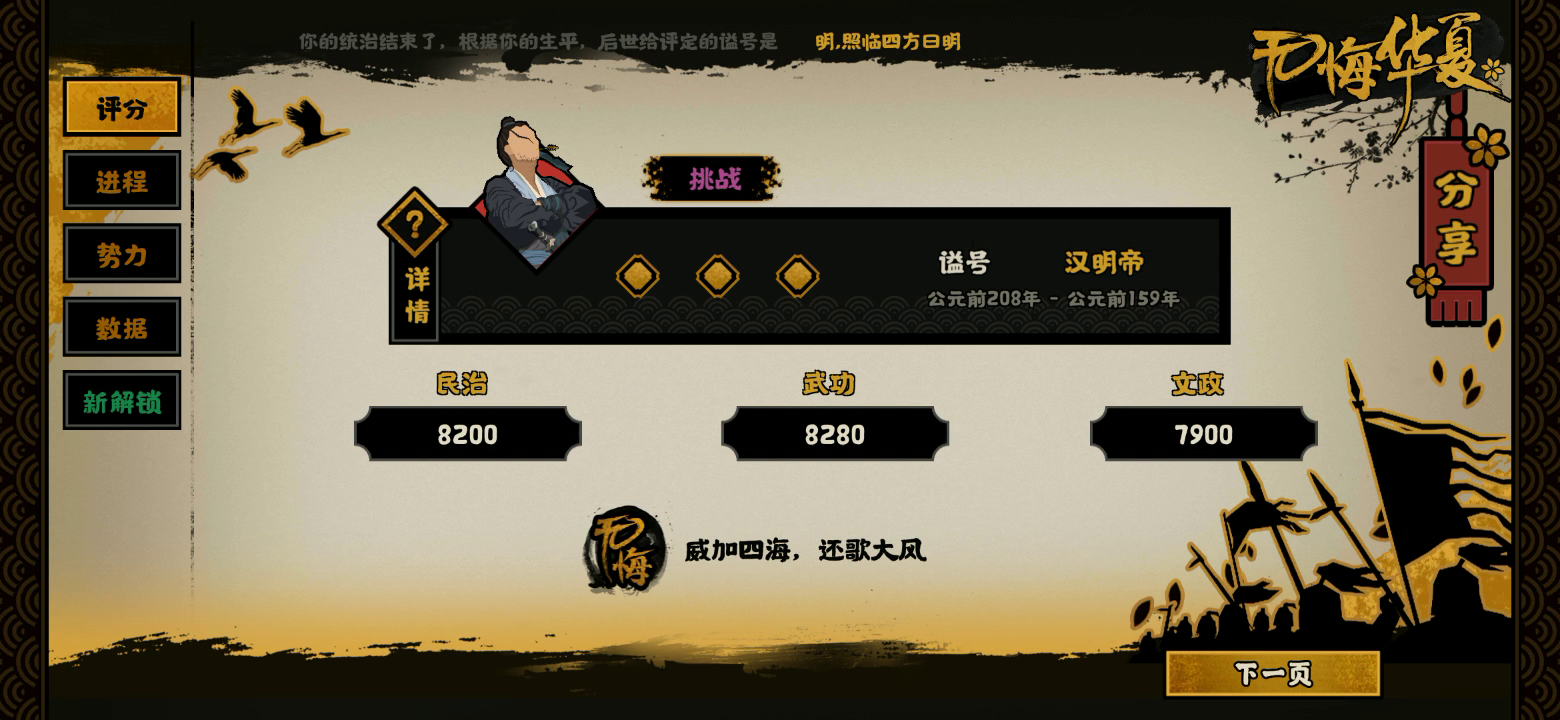 十月七日开始玩,普通模式不曾败过,困难模式失败两次,而后连胜两次,挑战模式连败九次,胜于今日,期间不曾查探攻略,困难模式及挑战模式也不曾用过任何道具,我,可有资格傲然?