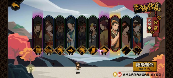 #无悔华夏 之前刚开服的时候玩过一段时间,现在开个新号回坑,从第五十抽开始就抽名臣特别顺。五十抽,鲁肃六十抽,陈庆之七十抽,庞统八十抽,诸葛亮九十抽,鲁班