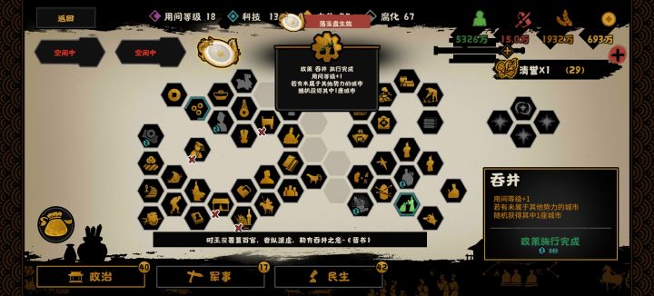 第一次感觉霍光好舒服,开一次科举,一直刷吞并基本上就完成任务了,然后把那几个孤城一打,将抓了就OK,刷满好感不到十分钟