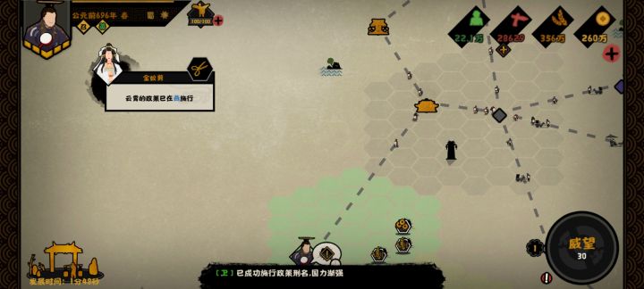 昨天打了一把春秋,以为是五六年打完的(期间就点了三次两年一次的国家政策),结果结束一看30多年把我人看傻了,然后昨晚睡觉前开了一把点了庄周的内圣外王,结果现一看已经过去26年了?然后我试着把界面停在政策那里然后把无悔华夏留在后台运行,好像年份就不会增长,然后台关了反而就会增长,这是挑战模式的一个机制吗,还是一个bug
