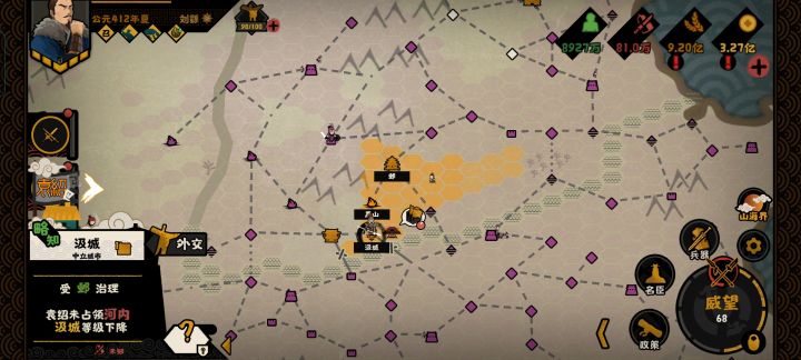 众~所周知,当该要地有军团驻军时,直接攻占治所使势力灭亡后会导致这部分要地变为中立要地,那么可不可以在变为中立要地时保留军团建制,多一个“招降”按钮,招降成功后可以直接获得该要地及要地驻军军团(威名等级可以保留但升级进度清零,同增援),这样多了一个武将获取途径,也不至于打中立要地不加军团威名升级进度(在不影响行军的情况下应该有人会不打的)