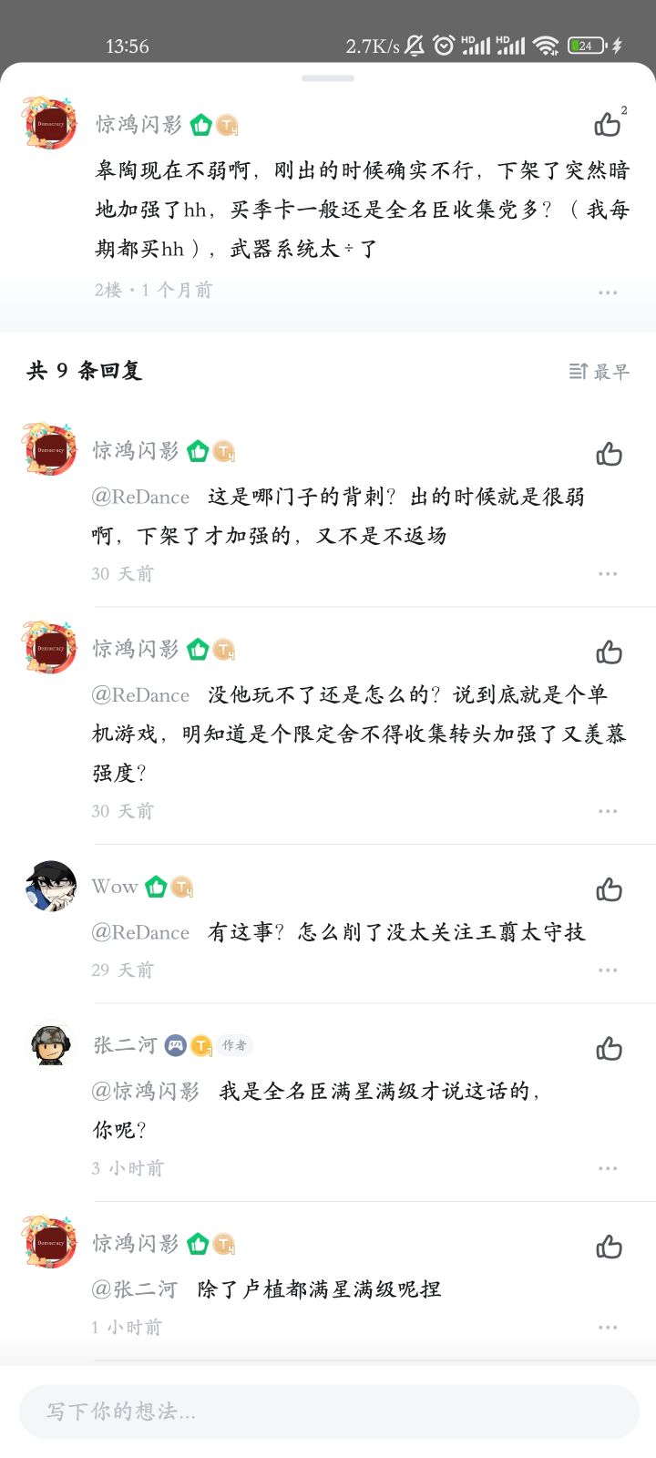 写在开头:并非恶意挂人 只是觉得有点逆天你跟他谈季卡收藏 他跟你谈强度你跟他谈强度 他跟你谈练度似乎高练度牢玩家的发言有了练度的背书就能奉为圭臬了发帖玻璃心不让评论建议别发捏到最后练度捂不住嘴了就选择拉黑我只能说某些玩家和游戏一样做的越来越不行(仅个人看法)