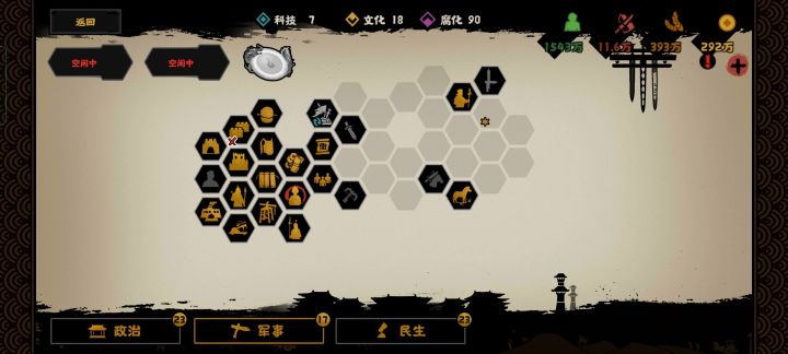 在游戏里可以选择称帝,可以选择加入晋朝对抗汉国,或者自立。晋朝和汉国为死敌无法结盟臣服等。游戏阵营分为司马越(晋朝)司马颖刘渊汉国阵营(司马颖和汉国初始同盟)可以选择加入任意一方义军势力陈敏、杜弢等不能加入任何一方胡汉分治玩法:需要调节内部民族不满,确保国内平衡,否则会发生叛乱。可以自领大单于,也可以把大单于封给手下。大单于下至左右贤王,可以委任地方少数民族为左右贤王降低不满。拓跋鲜卑