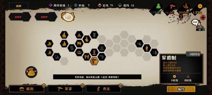 军爵制:此刻已经无敌连坐:最强降腐舍我其谁,民心有鸟用铸币:我知道我知道,我只是开启田税,军赋不得不吃的前菜贸易:我知道金币产量不是你最想要的,你只是为了市税市税、相地而征衰:无限的钱粮,无限的资源胡服:一🐴难倒英雄汉