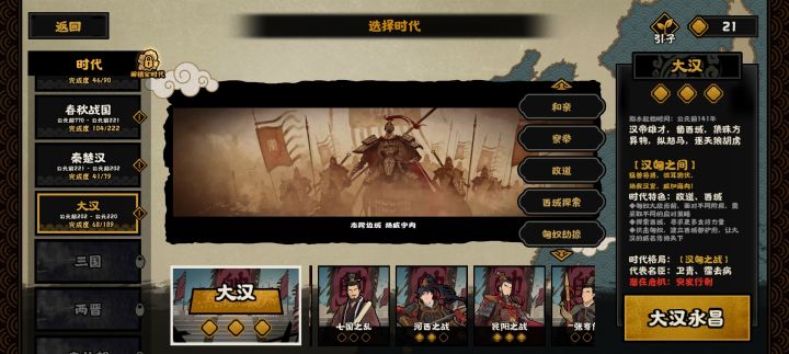 人机野心势力楚战力框框加,南越还疯狂会盟给楚行方便(搞不懂哪来的威望,我带的郦食其稍微不注意南越就能连续会盟)。又,秦楚汉的汉谁玩谁知道,强烈建议把那个怀王之约事件改成楚会盟义军,一起弭兵止武共同观兵共伐秦,然后强制不撕毁会盟条约一段时间,不然玩汉真心累。又2,潜谋概率真低,我用间八级了,花完外交值才成功一次,用间感觉以后不太可能和科技一样能有很高的等级数目(伍子胥用间加战力流寄),但希望能增