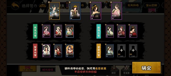困难孙吴,席卷,给还没有周瑜鲁肃的人参考民生 解忧,前期50战力缓解压力,后期百分比军事 孙武,主要抢威望开会,前期看情况买马点40战力,用间等级+2能缓解曹操的疯狂使坏政治 范增,最好五星,一次威压两个比较快贤者 仓颉,东吴真神,前期东吴非常卡特殊资源,科技很慢,仓颉极大释放东吴前期政策潜力,但是会因为点政策缺钱粮,发家的地盘太小了收租少如果只缺周瑜,地图招募诸葛瑾左慈,诸葛瑾可以提供