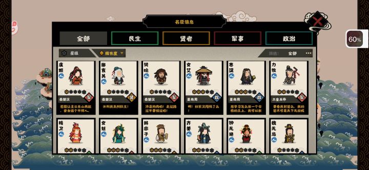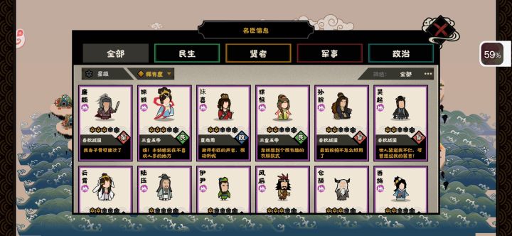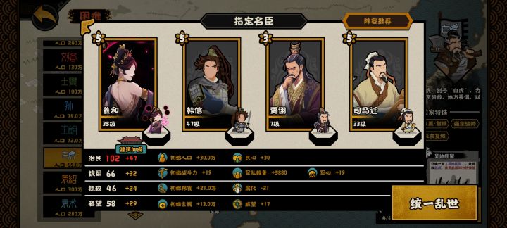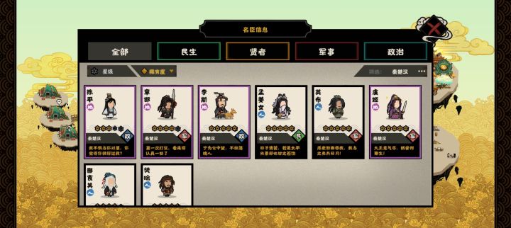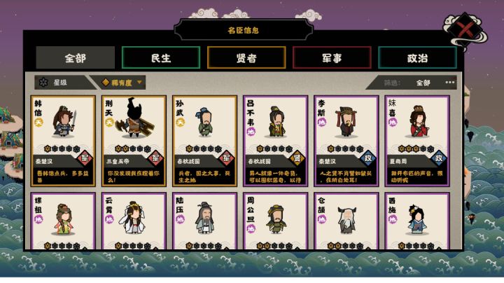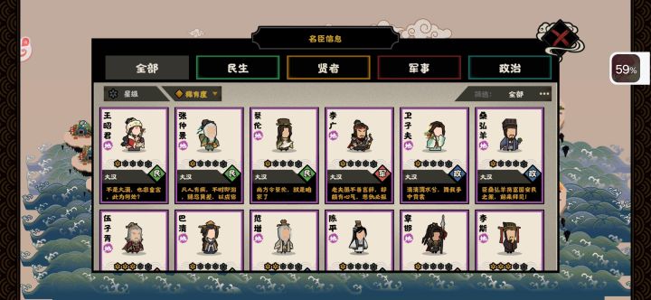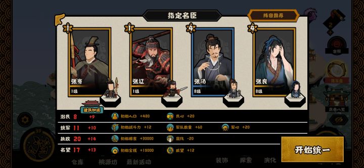 刚玩没多长时间,资源少,也不会搭配,能不能找一个比较万金油的组合感谢各位大佬这是现在有的名臣