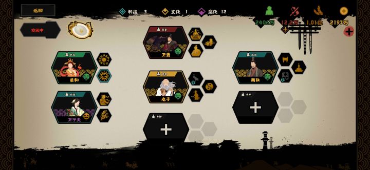 关于大汉名臣搭配心得卫霍都用过,还没满星。还是觉得传统名臣比较强力。羲和,孙武,商鞅,姜尚,四位名臣在一块,开局把所有攻击力政策实行,然后直接干匈奴,干赢没问题。然后打掉两个关键地区,掐断与都城的交通,再把河西走廊吃掉,然后生产宝马,升级特色兵种,基本就可以推了这四个名臣在一块,只要能打仗,各项数据都不缺