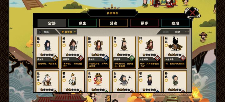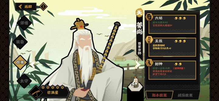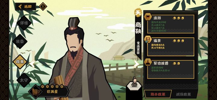 白起夺威望养庄子,李斯大一统带来一点科技帮扁鹊,还加军规。灭国李斯加战力,庄子循环政策加战力,再加上庄子百分比战力。