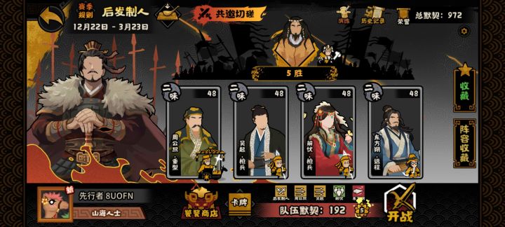 还有一个法正,游戏内的攻略阵容都没凑齐,不知道怎么搭配,萌新一个