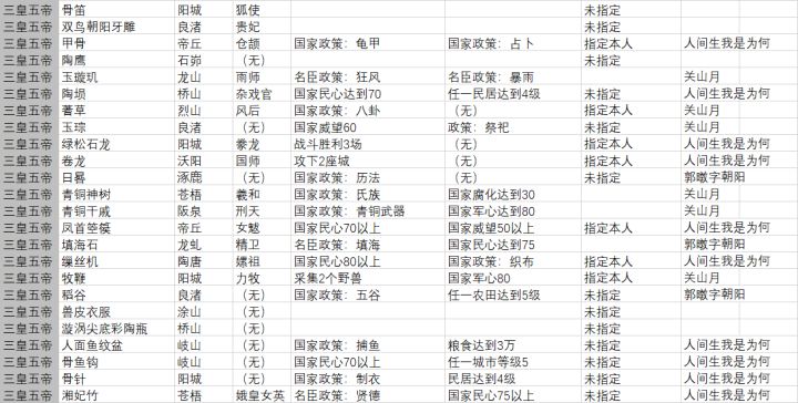 本来想自己总结一个看着舒服,结果强迫症突犯把涉及到的生僻字读音都进行了标注,再然后又想把任务条件和顺序捋清楚,所以制作了本帖。首先强调几个要素(虽然有一些论坛里很多大佬已经强调过了):1.文物收集的地点是目标点附近,即与之直接连线的城市亦有可能刷到;2.寻访出现条件为城市升级至3/6/9级时,即初始3级的城市可能不会直接出现寻访按钮(个人测试,如误可删);3.部分文物任务时间极短,可以通过