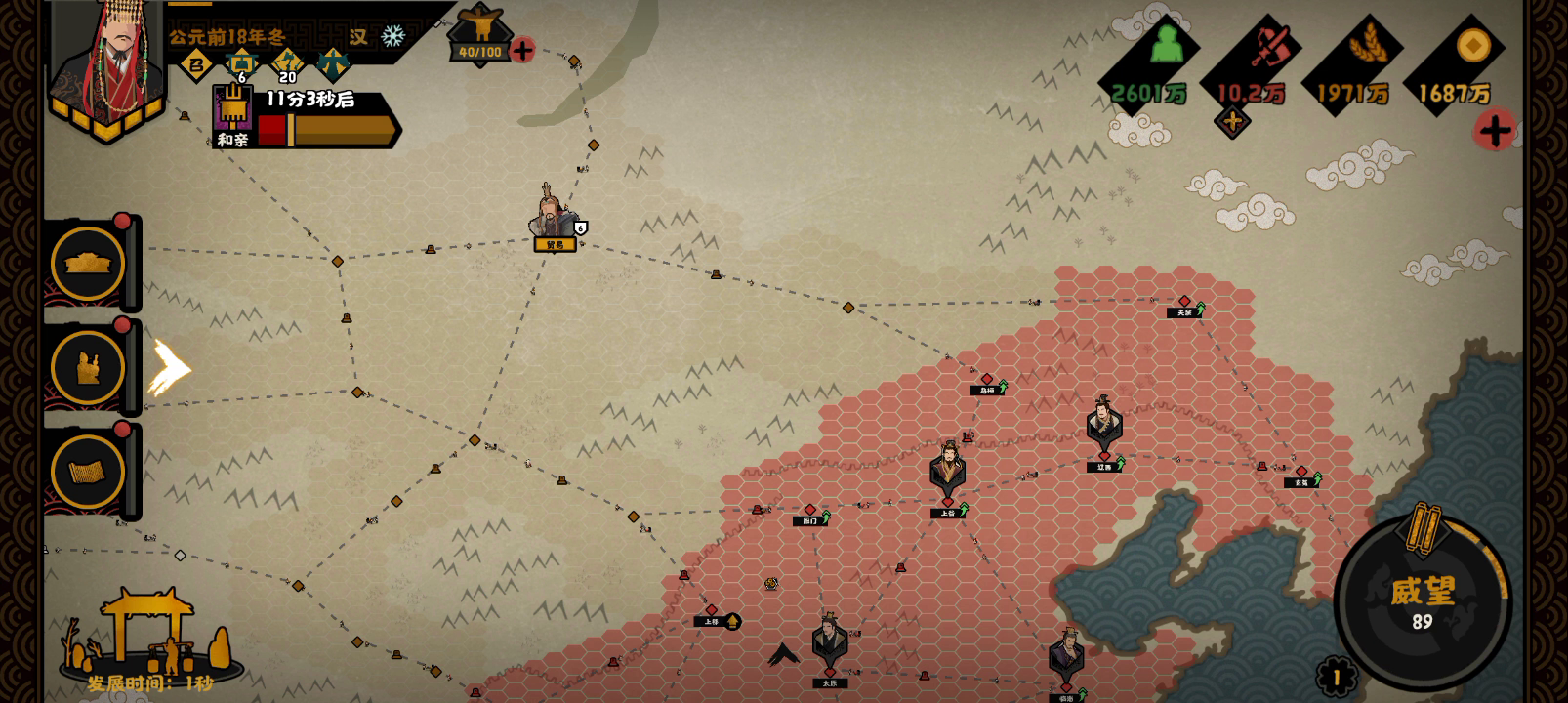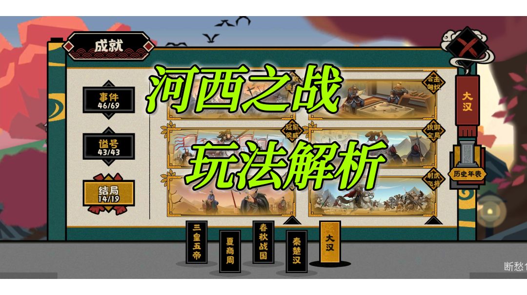 资料提取:【星辰组】600729614或【粉丝群】686724285 感谢【无悔华夏星辰组】全体成员和Up一只甲胄骑兵提供数据和素材支持! 一、.开局介绍 1.名臣推荐 ①民生:羲和,西施,嫦娥,李冰 ②军事:白起,刑天,章邯,虞姬 ③政治:吕雉,商鞅,李斯,女艾 ④贤者张良,老子,孟子,郦食其 2.开局数值:30极限,优先庙算,粮草,战斗力,兵甲 3.开局可募兵升级2次 4.政策路线推荐:粮草,兵力,庙算,军心战斗力,用间 5.兵法说明:2级弓,步,车和1级骑,枪 二、五大结局 1.强攻故关 ①光狼城和平时多拿援兵牌可打赢炫氏城 ②3个战斗技巧 ③3个决战技巧 ④路线说明(炫氏城可以败,难度加大) 2.无济于事 ①降低敌方庙算方法:议事政策,募兵政策,用间,探索,名臣技能(军心类似) ②路线说明 3.围歼赵军 ①速取故关(<1个月完成,>=1个月失败)议事政策水利,村庄,仓库,用间,探索都会影响时间 ②无援困境,速死一搏巧用 4.纸上谈兵:难点赵军辎重 5.秦军败退:无名臣,玉溪河谷3-4次投敌,每日完成可得100金兰