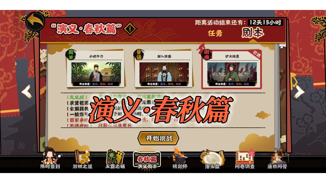 【无悔华夏】演义·春秋篇-逃课打法,速刷任务。#攻略大师#