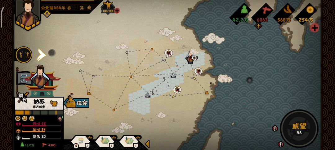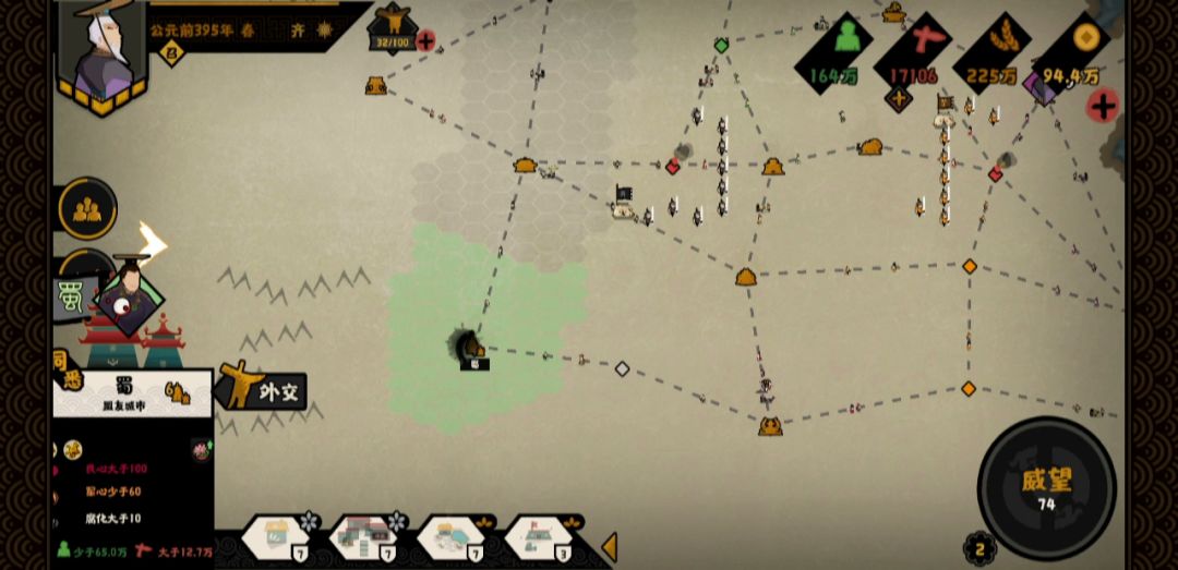 只需要带一个郦食(yì)其(jì),不过可能需要一个战斗力强一点的其他名臣,因为有两场硬仗要打 我带了刑天(之前带随机军事试了下,重试了好多次才打下,太难了,主要地形对车队很不友好,带个刑天要简单很多,刑天大家应该都有吧),如果对自己操作自信可以无视这一条 不刻意拉满好感一把大概7-9分钟,每个4碎片 下面是具体步骤: 1.楚开局,迁都柏举,主要是为了把军队移动到更近的位置,节约调兵的时间 2.点军事4项和刑天的狂斧,进攻九江2次打下,行军加速 3.点郦食其说国,拜访越的姑蔑,直到对面臣服 4.把吴好感加够,然后联盟 5.谈判选择找他谈谈——你多想了——良兵雄将 6.达成诸侯咸服结局+少量经验+少量纹石 总共需要2次打仗+若干拜访(+若干用间)+1次联盟 这个方法只适合刷zz碎片,顺带刷刷民生和军事碎片,因为三家绑定范增没办法刷zz碎片,所以只能出此下策 如果想速刷纹石还是老老实实去三家分晋吧 如果要把民生和zz的好感拉满,可能要10多分钟 可以先郦食其酗酒开失败会盟,然后威望刷满再开一次,zz就可以+10好感,然后民生靠联盟拉满,zz靠用间拉满(不过我觉得zz拉满太累了,推荐80就够了,除非你很需要政治碎片) 之所以用游说而不用更稳定的拜访,也是因为民生很容易加,而zz加好感太麻烦,不过也可以吴国好感过60开贸易后买他3个马加自己2用间后再刷,这样用间就基本不可能失败了(不点游说点窃取就可以一直用间不用担心资源不够) 应该还有优化空间,后面我还会再做一下名臣的随机化尝试和尽可能得压缩时间