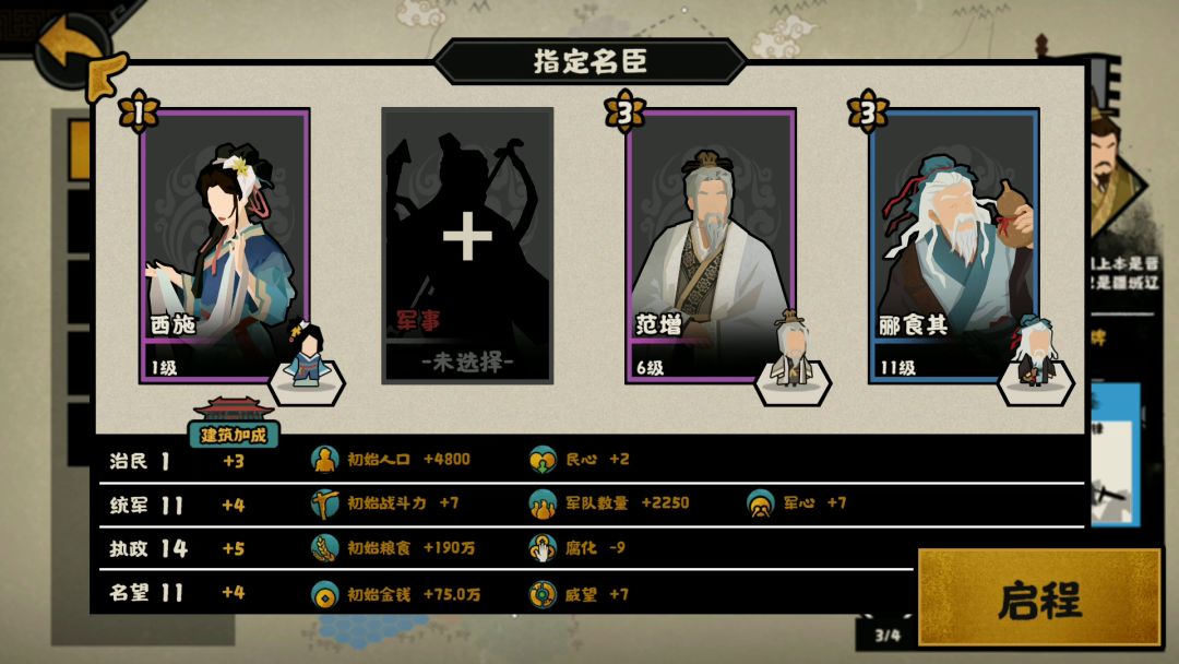 带范蠡跟三星孙武+用间等级,拜访魏晋拿士子,点出用间:说服,第一次决水基本成功。 三家分晋拜访,用间不会绕远路去首都,直接选最短的距离拜访跟用间。 我手速不快,手速快的5分钟之内可以结束。 当然范增郦食其星级低会影响一点效率,会盟记得送礼给韩,威压臣服就从来没有失败过😊。 新名臣大家刷出来之后可以去地图最上面招一下,可以加经验,人级两天就满级了。