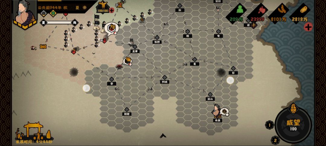 简单说,战略模式像PC版的文明 战斗是,即时战略+卡牌技能。 可以选择不同的华夏历史阶段,比如商夏等,不同的历史,不同的国家 上手简单,但是越玩越难,每一步都会影响后续发展。 总得来说,诚意满满,一战到天亮。