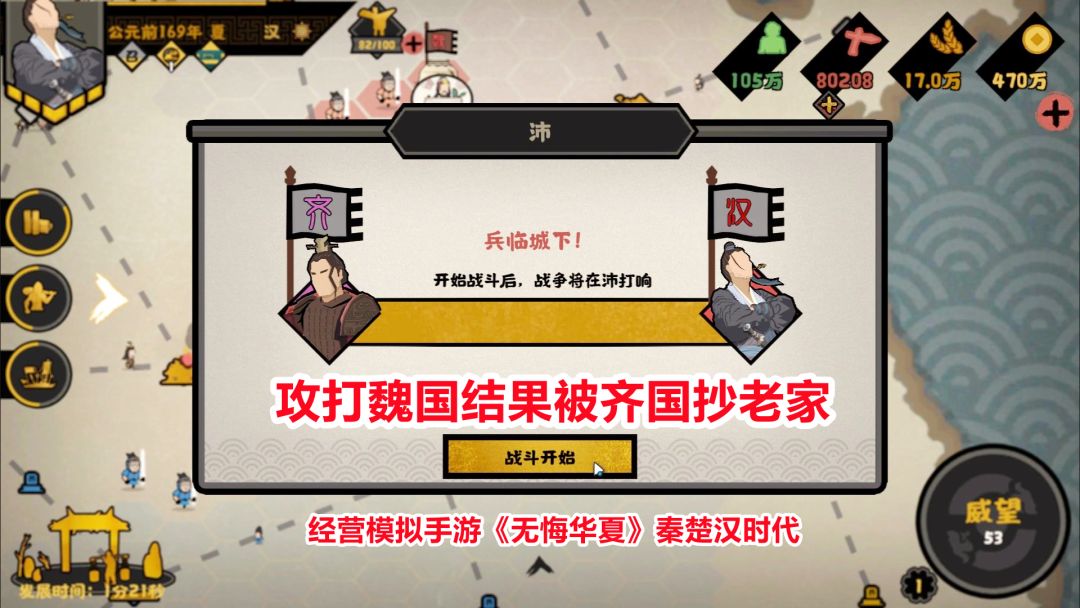 《无悔华夏》是一款多朝代历史题材国家策略模拟手游!无悔华夏:攻打魏国失败,结果还被齐国抄老家!模拟经营手游试玩,新游试玩:无悔华夏秦楚汉时代,攻打魏国失利结果被齐国抄了老家