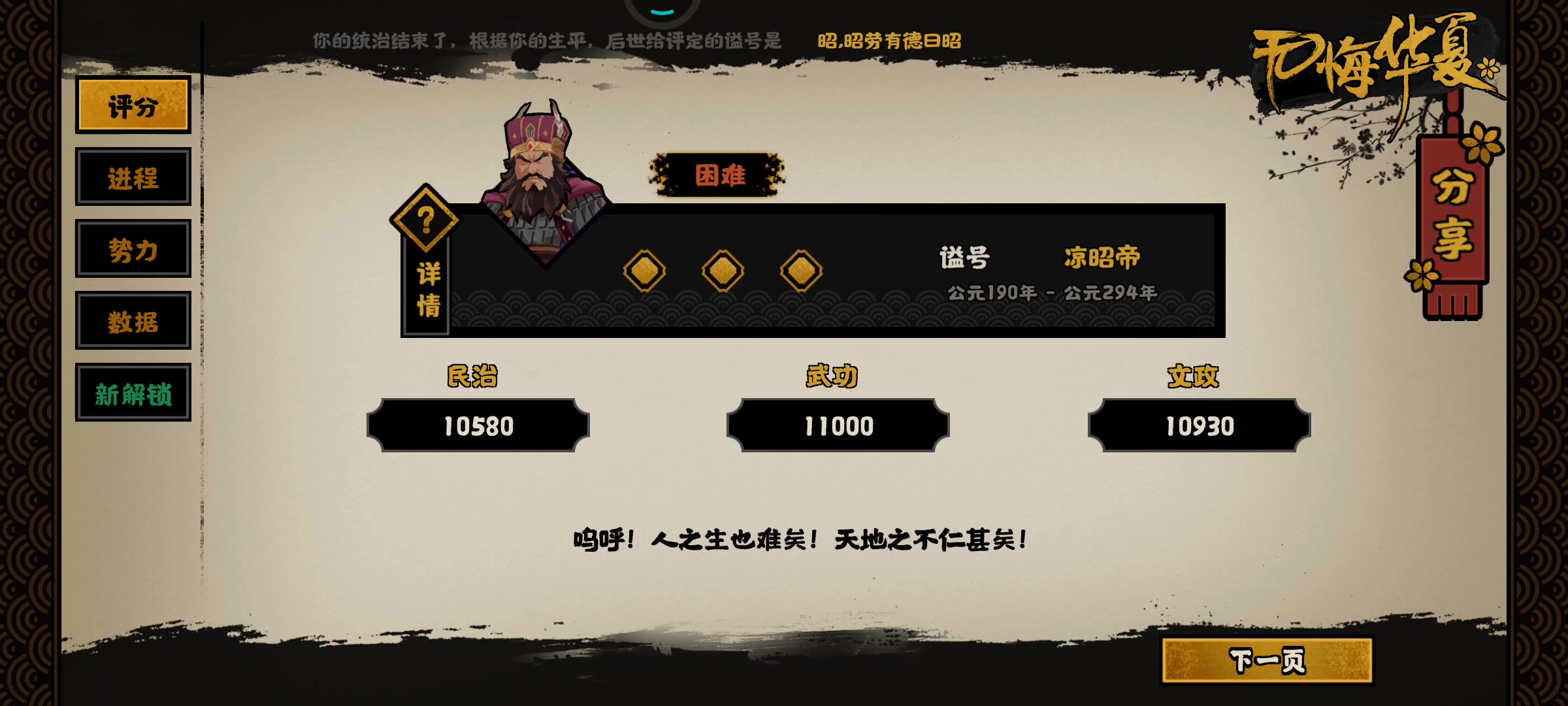 从昨天晚上打到现在,刨去睡觉吃饭都在死磕董相国,专属事件和地图里能刨的文物基本搞定了,好累啊,明天休息一天,有什么想问的可以问我。 对初期的董相国来说,最关键是军事线右上角那一圈政策,点完了基本就是一路平推。优先灭曹刘袁,灭完之后就基本不需要控暴虐值了。 对中期的董相国来说,钱粮可能是你的瓶颈,因为天天被揍,攒了二百五十多万军队……这时候尽早凑齐5个港口、秒出3个香料就很重要,它能让你点出政治线那