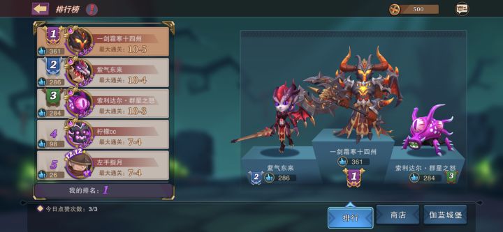 大家好,我是m.25的一剑霜寒十四州,可以叫我十四,这里晒一下战绩,分享一下新区前两周的珈蓝攻略,也请大佬们评论区指点下后续的资源投入分布。0.战绩:1.阵容:(1)虫6虫阵容第二稳。主打4后排输出的阵容。玩法靠小虫子吃技能伤害拖回合,撒丁和蜘蛛依靠虫族时刻成长摸伤害,一般需要打满20回合。重点养成撒丁,蜘蛛,卡西欧。凹点撒丁别死,靠边飞(2)术6术阵容第一稳。其他队打不过的