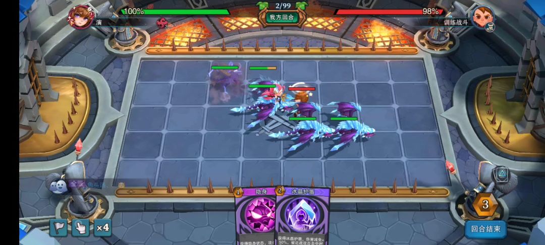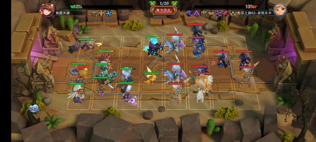 大家好,我是m12永远的深蓝,新副本一开我就怀着激动的心情开始了征程,虽然难度有点偏低略有遗憾,不过有东西玩总好过咸鱼收菜,废话不多说,这里介绍一下几个boss的打法推荐。第一个boss 简站位如图所示,4星女帝带冰魄,第一回合把简扔了,防止简攻击力过快成长。第三回合开战歌,之后就简单了,小白净化简的旋风就好了,绿卡完克金卡,小白永远滴神。第二个boss 先知这个boss有