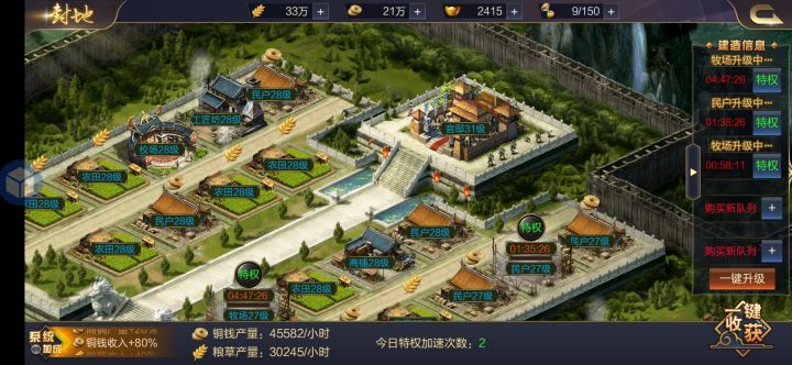 通关城池关卡,不仅可获得丰厚的资源奖励,还能获得大量经验值,而且城池关卡的难度普遍较低,只要到达了开启等级,基本就能很容易通关
