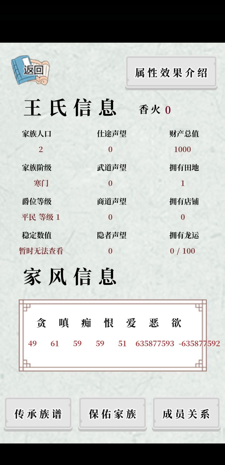 如图所示,我们一开始在选定属性的时候。贪嗔爱目前是良好属性,因为这样一开始有语音,你在有房屋和田地的时候积累财富(经商)。
