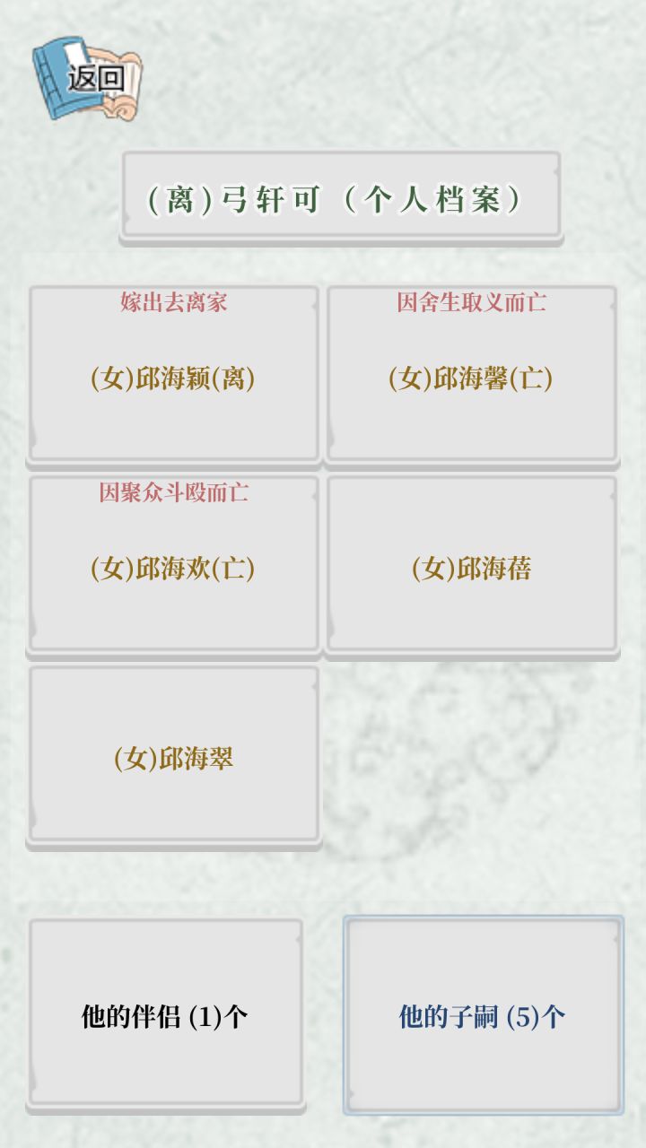 你们发现没,这个游戏最多只能十个孩子十个伴侣,因为位置不够,不能再多了,就是孩子伴侣死了也占着位置,所以当你的孩子和伴侣满了了别保佑他了,让他赶快死找下一位家主继承吧,不然哪来人丁