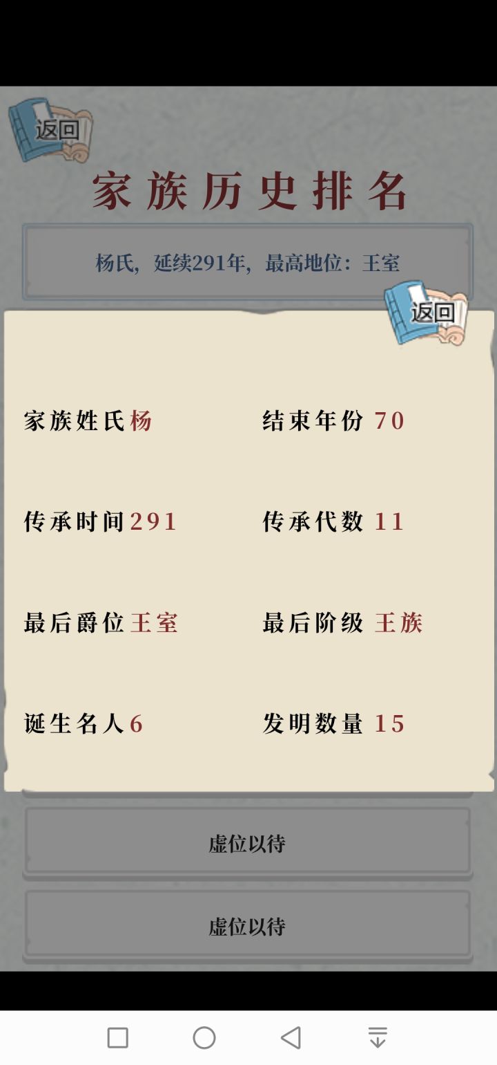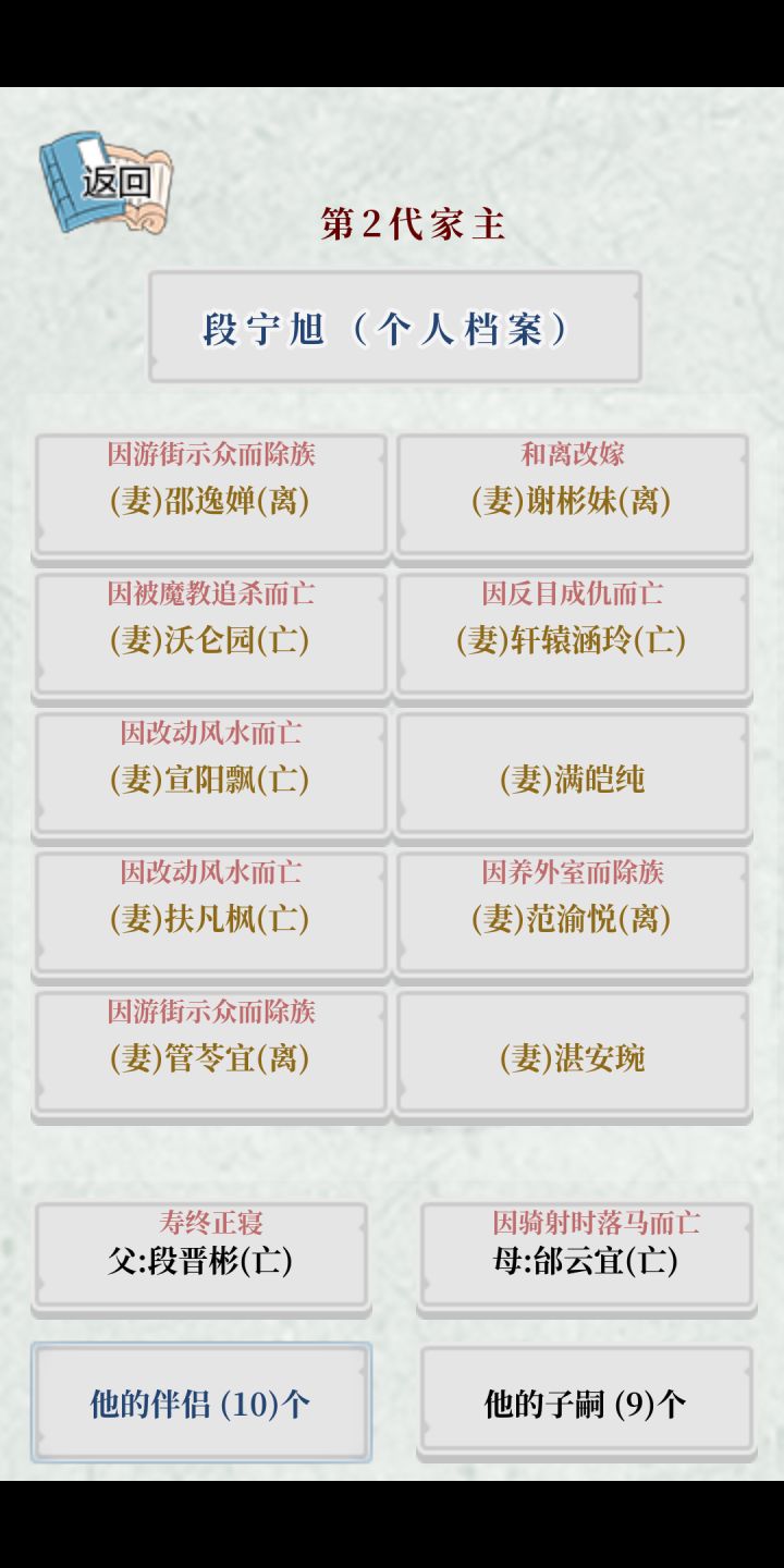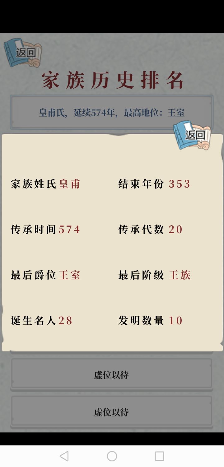 前天入的坑,玩了诸葛(叛乱失败) 太叔 (手抖分家+改风水失败死了一大批) 司马(建朝4年民不聊生) 以上这三个家族只想着如何建立王朝,所以都只有100+年寿命。以及今天玩的公孙家族非洲家族 真命天子要么死的早 要么是女子(到了岁数就嫁出去) 要么分家被分出去 反正没几个名人。