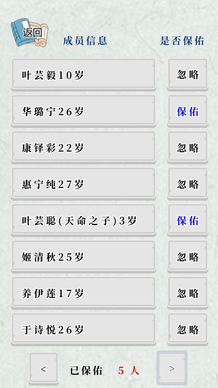 给刚玩不久小萌新一个技巧,其实可以自己选择下一任家主的,等家主49岁时,你只保佑家主和你想传位的人,然后第二年,家主就会传位给你定的那个人了。我自己试过了,每次都成功。除非运气特别特别差,家主活不到49岁,或者接任后代刚继承家主就死了。尽量选能生,血又高的后代继承家业。