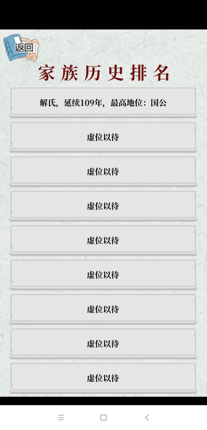 1.对家谱的作用更完善,比如从家谱可以直接看出谁是天命,谁已经挂掉【可以用颜色区分,比如天命用黄色,挂掉的名字框起来】2.增加姓氏输入,虽然姓氏不那么影响但是可以个性化。可以增加后代排序的自定义,玩家自己输入或者随机。3.每年结算增加返回键吧,手一抖就进入下一年,没来得及保佑新生儿。游戏还是很有趣味性就是感觉玩家可以参与的部分有点太少了…还有为什么男家主可以娶八个老婆,女家主就不能入赘那么