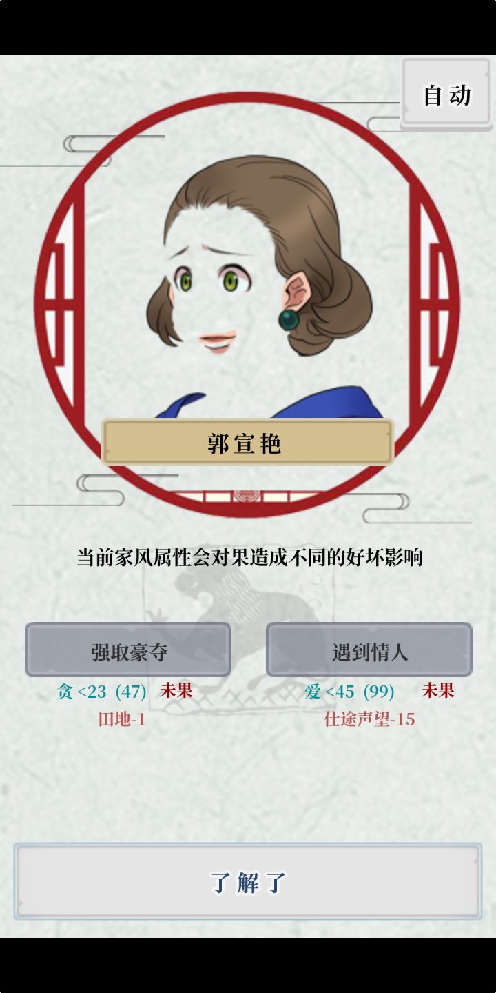 这个游戏做的真的是太粗糙了,随机事件不分男女可还行,我玩的一代家主,六个老婆有三个因为强奸民女而分开,我也是服了还有一个就是离婚的随机事件,生了好几个孩子的妈也能离婚的吗?这个随机事件做到也粗糙了还有养外室的事件,哪有因为这个就开除族谱的还有很多随机事件真的是不分男女,这一点不好啊。