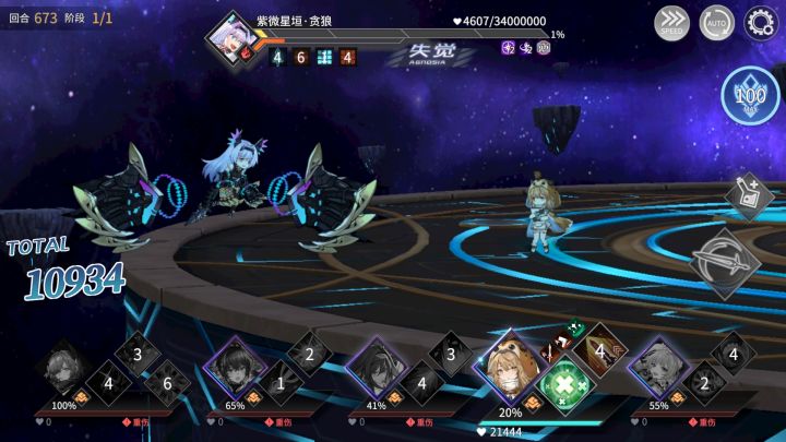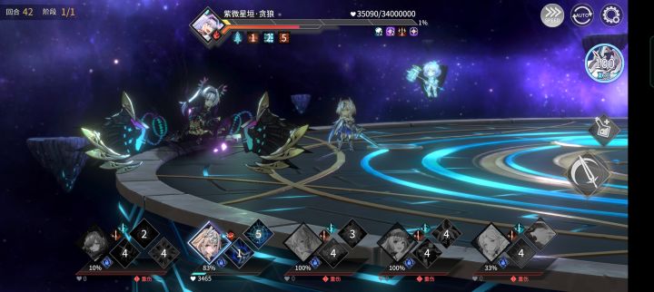 土队?bug队!这次bug的是r卡露露,当你基能把仇恨值降低点了后,打贪狼能做到无仇恨值,也就是boss不会打你。如图,泥巴佬们别玩背水凹了,摆烂吧!记得时间可能会超过,准备个电量充足的手机。其他三个能把贪狼血打多低是多低,一回合一万的露露属实折磨人