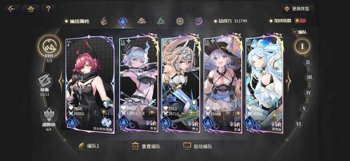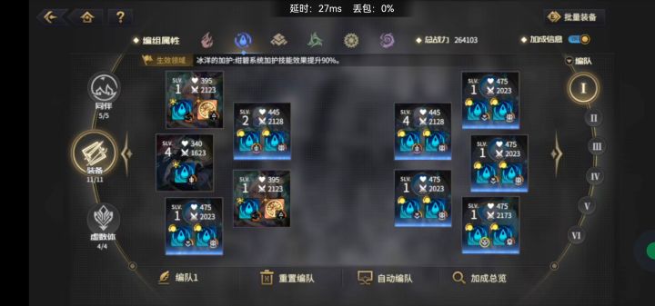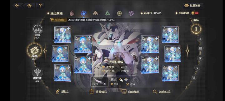50层低配(懒得上游戏截配置了)541水方盘,其中5阿尔法满破。第三个为r卡菲林(我愿称之为mvp),满破基能一点没碰,临时拉起来的影主带绝望,没有就武器破坏,以及两个推冷却的。半自动,所有治疗技能ai设置为75血放。包括莉莉安。自己看着血量,血量低而且治疗冷却的时候嗑药,具体操作自己看着来影主可以在开自动的情况下手动点选技能,避免有技能在开大后放浪费减冷却的效果。也可以不管,看你自己