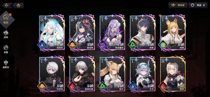 水队通关主线了,建议水对开局。后面慢慢搞其他队。这游戏的我还是挺欧的,单抽出雅典娜水队齐了