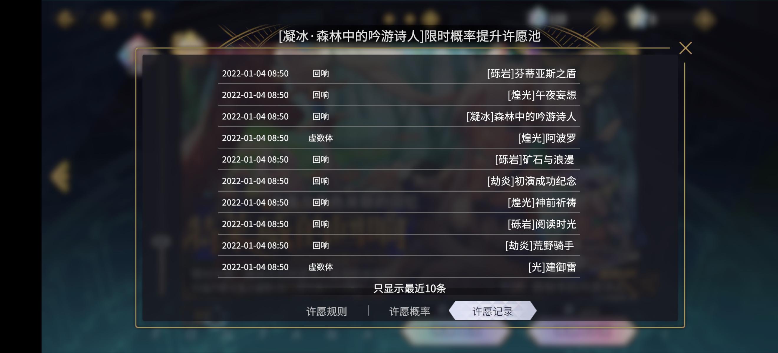 树宝啊树宝,你这光属性委实不行,阿波罗和建御雷我拿着没什么用啊,你说这11抽给我点水不好吗,怎么角色池不欧,随便抽抽的回响出了啊
