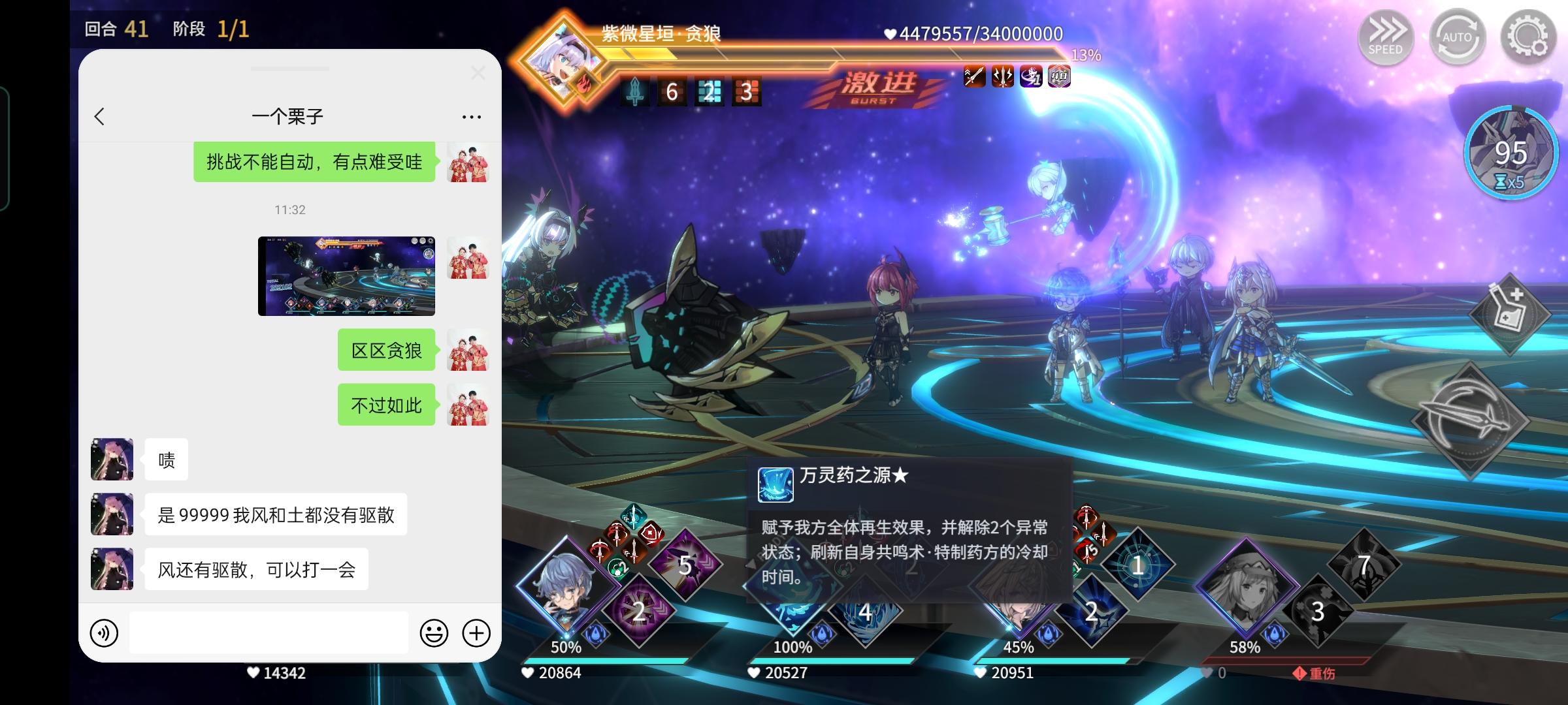 菲尔换花禀稳定自动,boss.拼死的时候会有一段2w的伤害,总结一下有点离谱。。。水队不带c自动随便过,风,土可能会吃瘪,驱散太少了