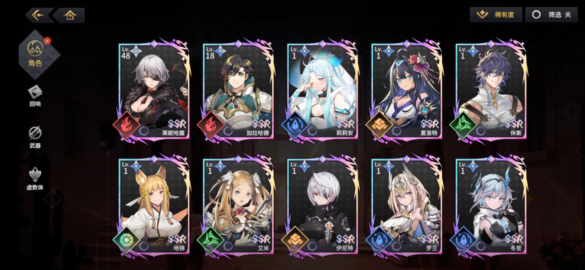 我的小光队 逐渐壮大先说明 我是第一次玩 不懂开局十连要拿什么 半路觉得光系不错开始选择了光系 很多大佬说 买个号 或者重开 我是那种账号洁癖型 只玩自己的号 再说玩游戏不就是被吸引然后开始肝的么 这不就是乐趣吗 至于坐牢啊 打不过啊 我想问 这游戏是要和谁比赛吗 pvp没有 就是慢慢推图呀 今天终于抽到一拳了还抽到独角兽了 慢慢摸清了 怎么玩 萌新一位 不喜勿喷 感谢之前各个大佬的攻略 就差贝爷了