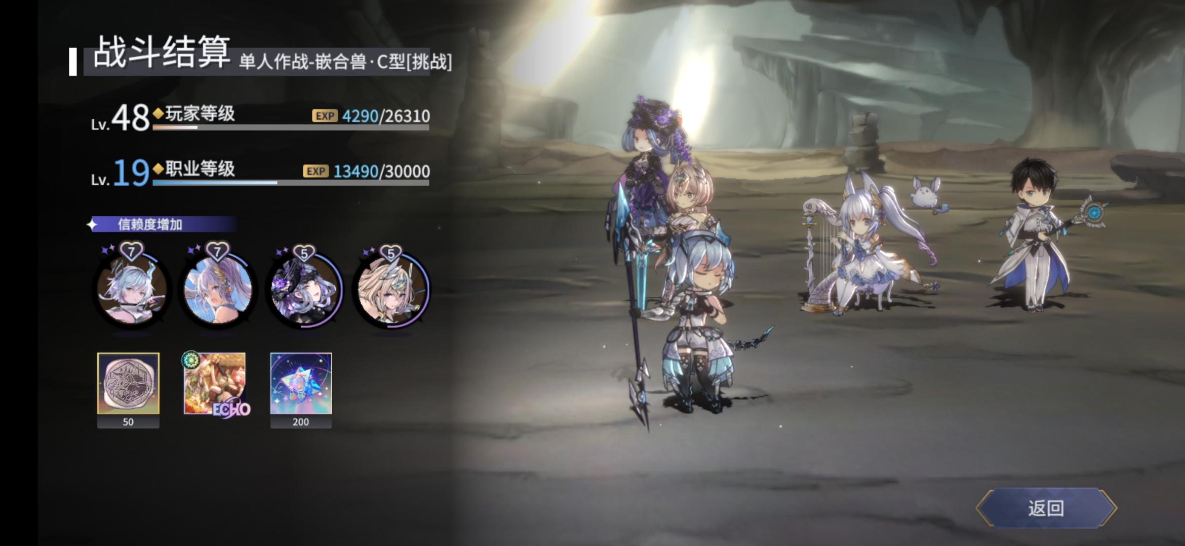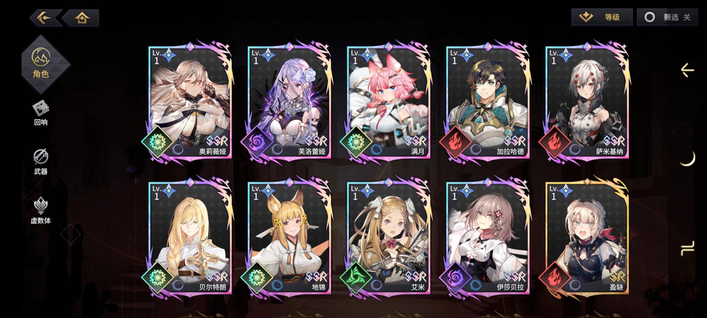 这个游戏太有意思了😚两个挑战的关卡?光队怎么打都打不过,换了一下水队。阵容随心配配,有什么ssr就上,临时练了几天,就把等级都60,回想也没有满突破,挂机就过了。。。