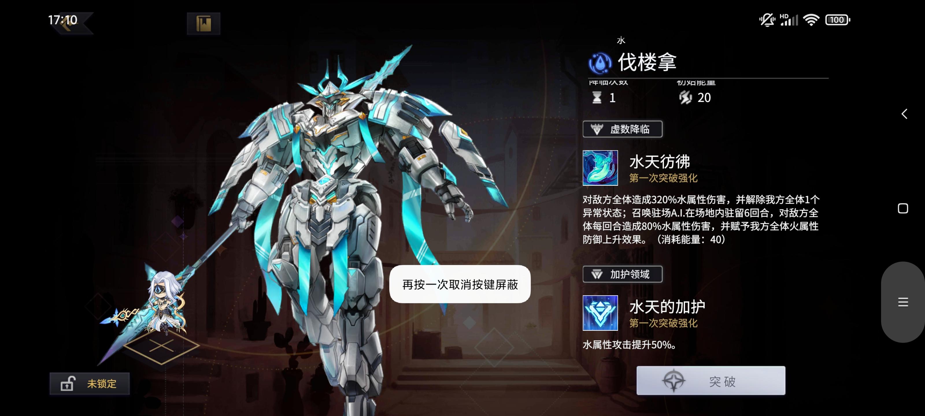 萌新求助刚玩这个游戏 攻略很多内容都一知半解 现在组的是水队 机甲选的是 伐楼拿 请问回响怎么配?还有现阶段商店里换些什么物资好?我现在正努力肝活动里面的 ssr满月 就是进度太慢。谢谢大佬指点!
