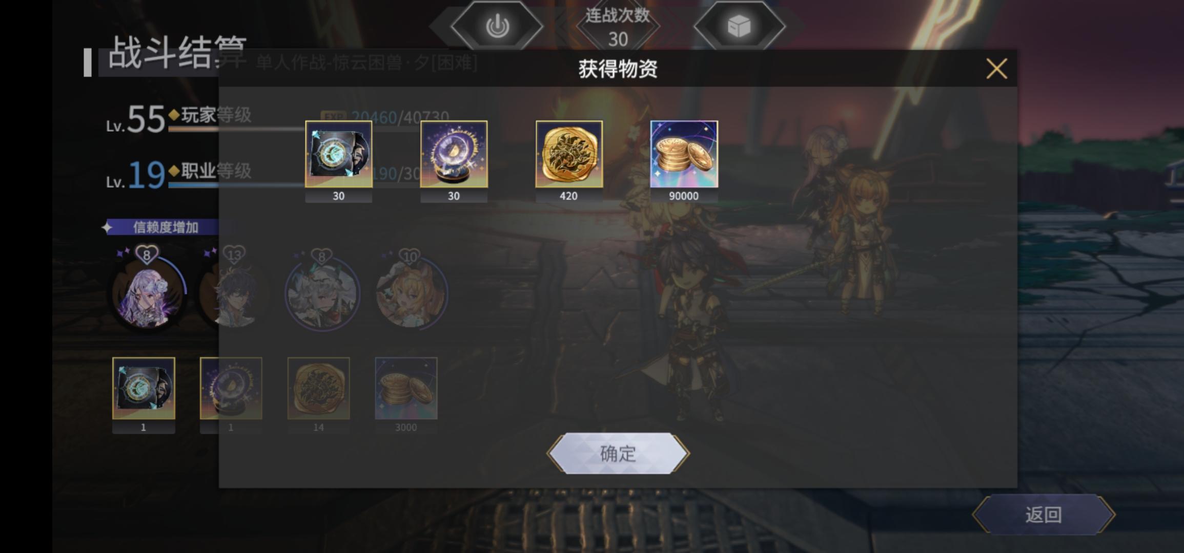 很满意这次抽卡40左右直接把风给我凑齐了,一个十连又重复了一个,后面又来了一个火,感觉自从凛120七个ssr全歪了之后就开始转运了(ㅇㅅㅇ❀)还有两万钻下个池子也能搞出来但是你这活动商店什么意思,只能换源质不能换另外的材料那还换个屁啊,这个我是真的不理解