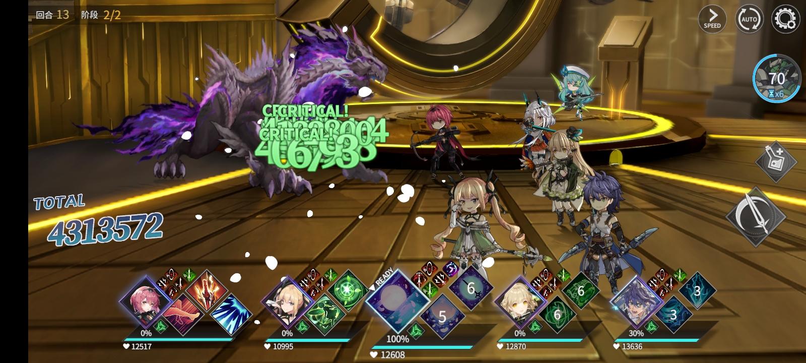 然后普攻直到全员有大招,减防输出一波后用诗歌的减伤